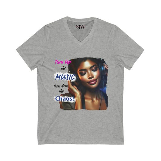 Turn Up The Music... Unisex Jersey Short Sleeve V-Neck Tee